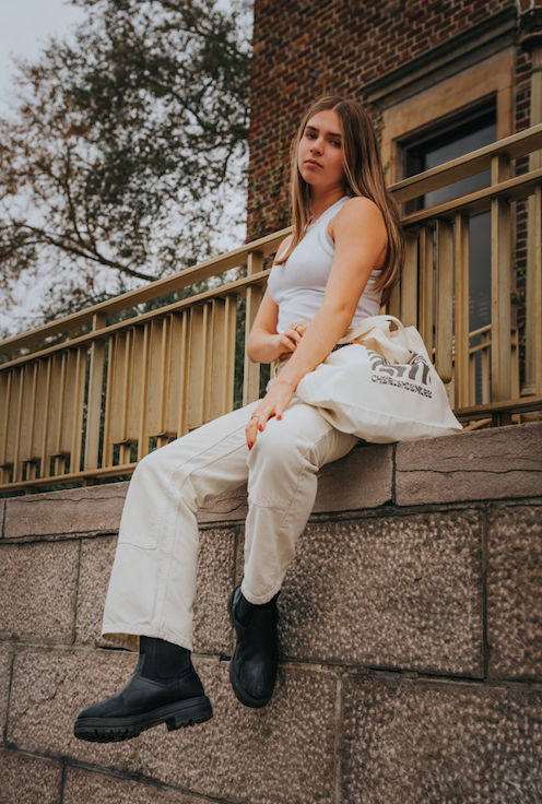 The Arcane Tote Bag. The eco-friendly, durable and recyclable tote bag is made from cotton material and measures 18"W x 5"D x 14"H. The side screen print is on one side of the Tote Bag and the handmade design is stone grey. Arcane is a must for anyone with a keen sense of fashion who wants to bring their essentials no matter where they go.